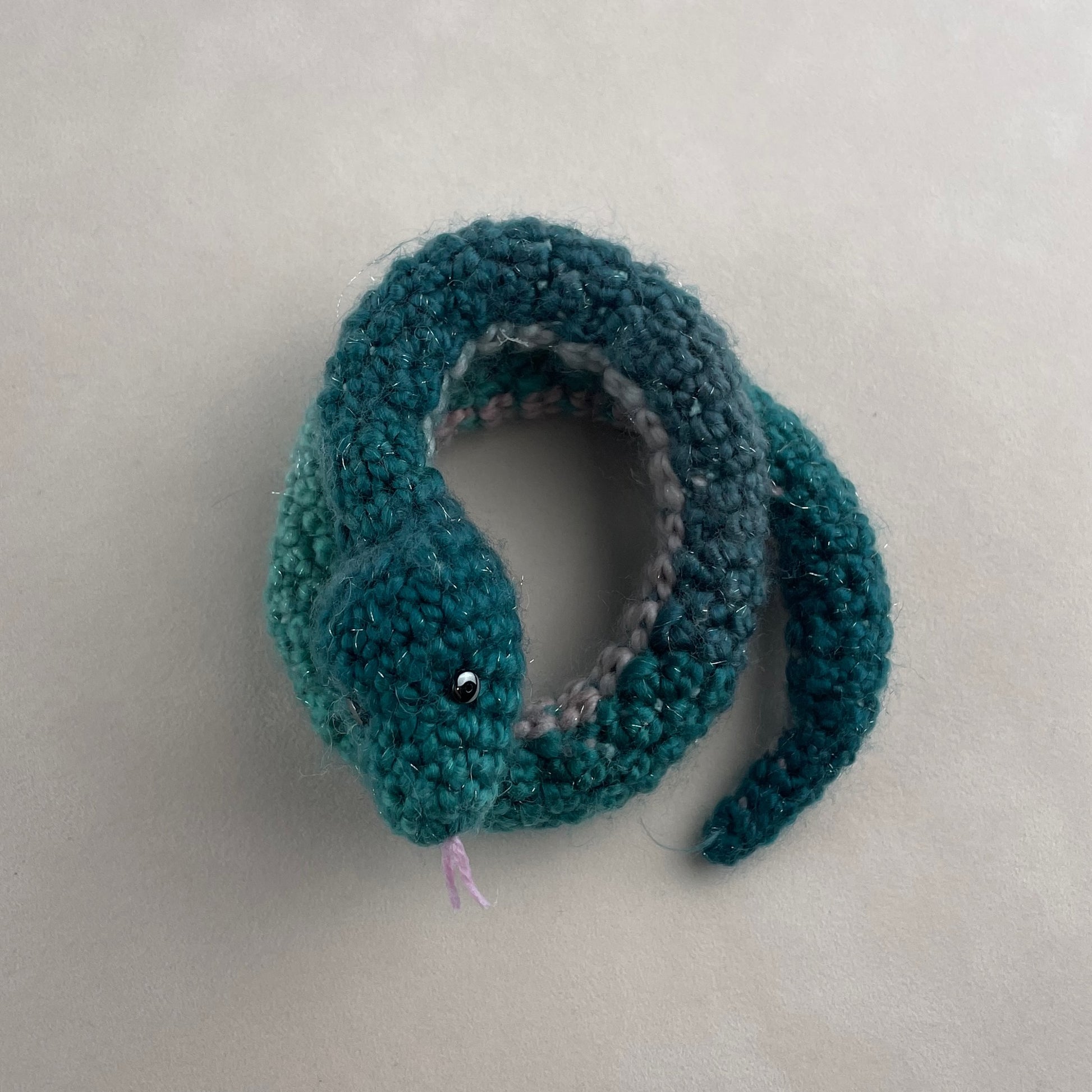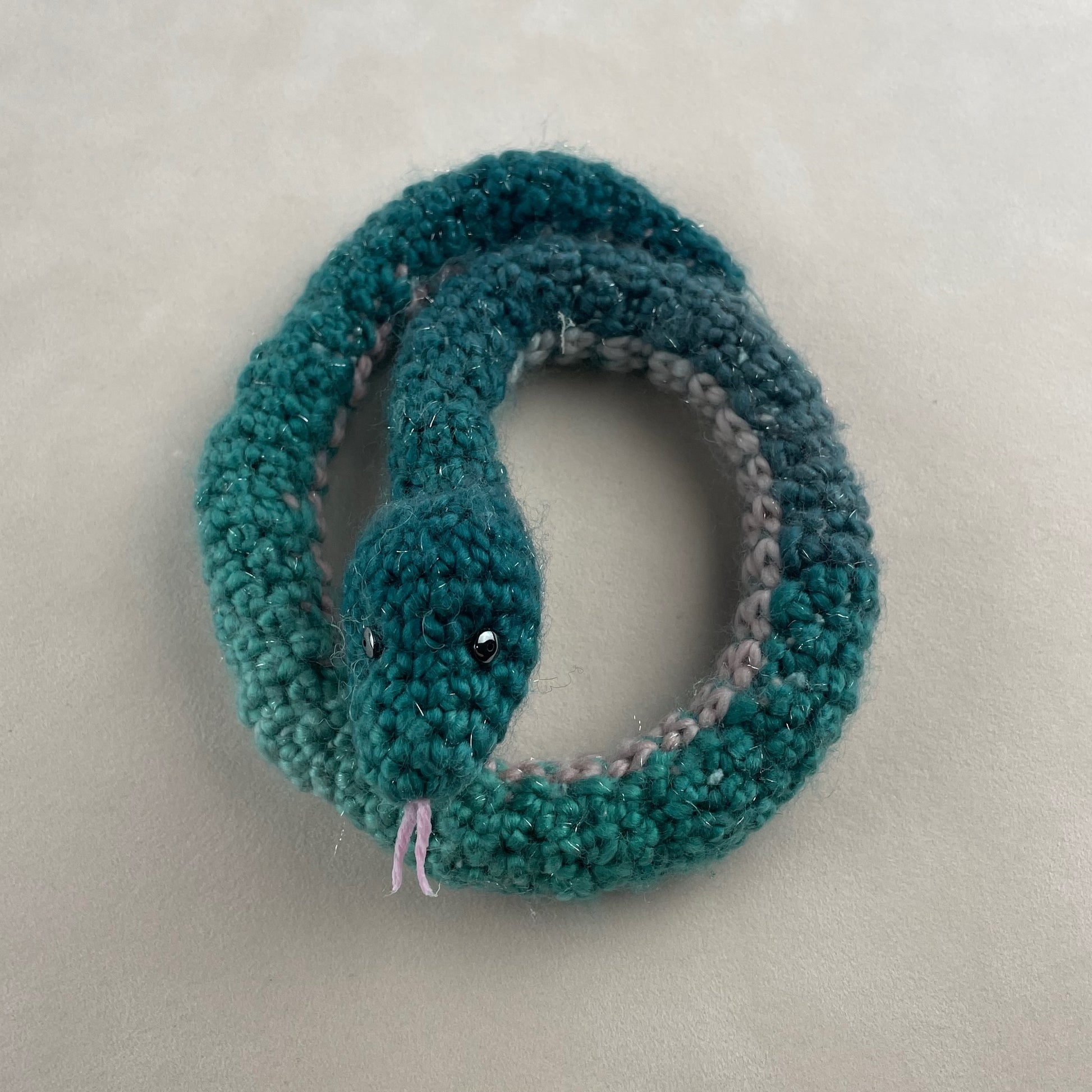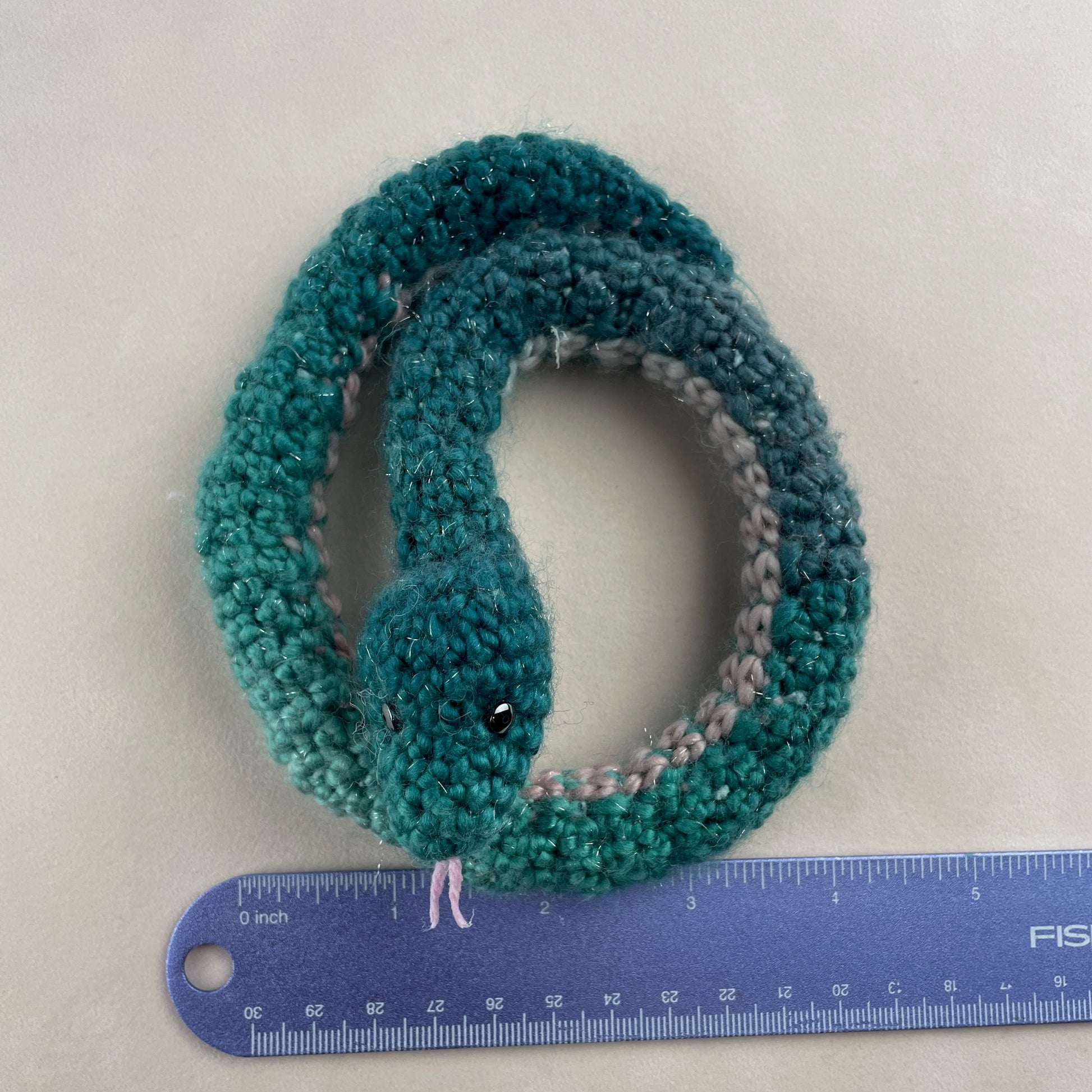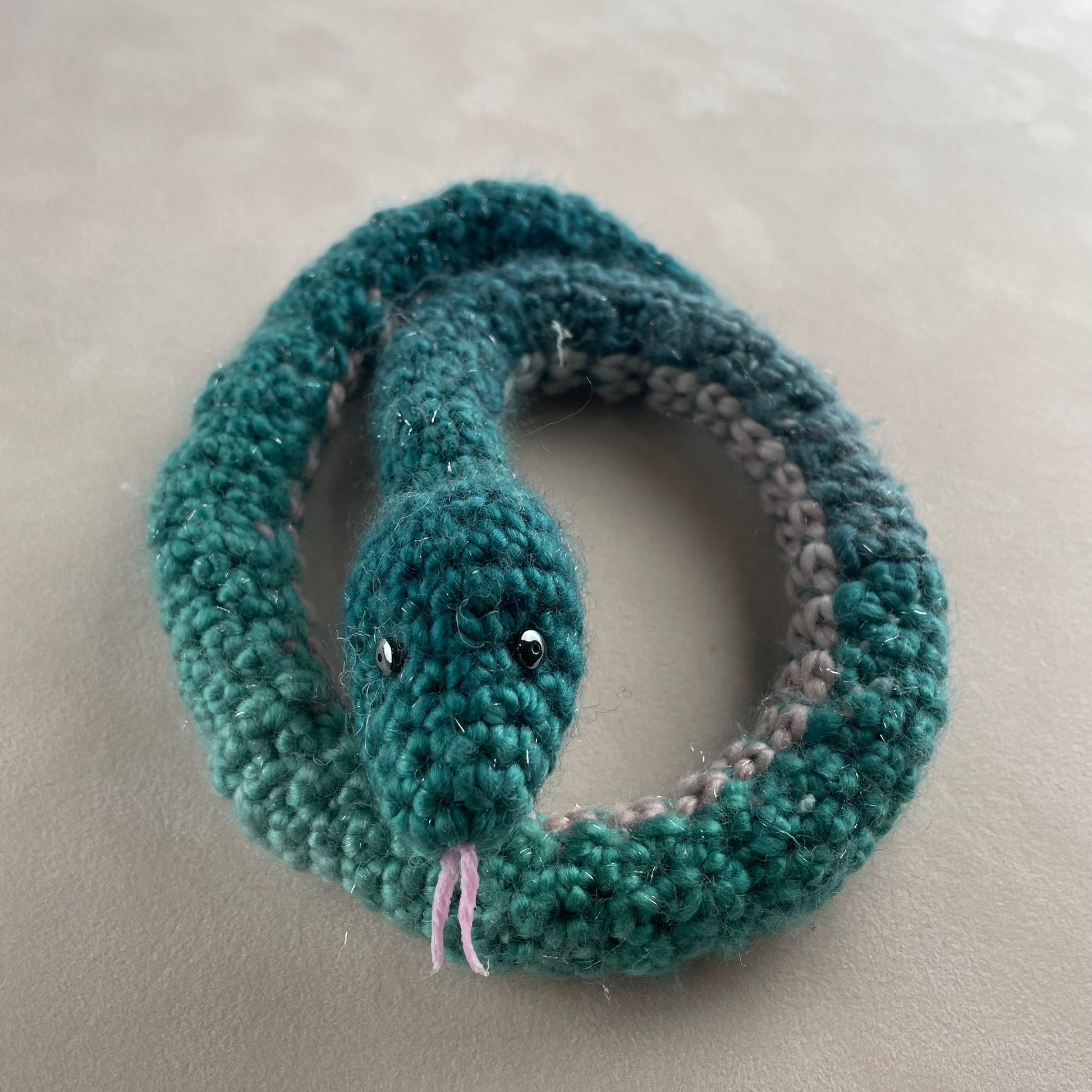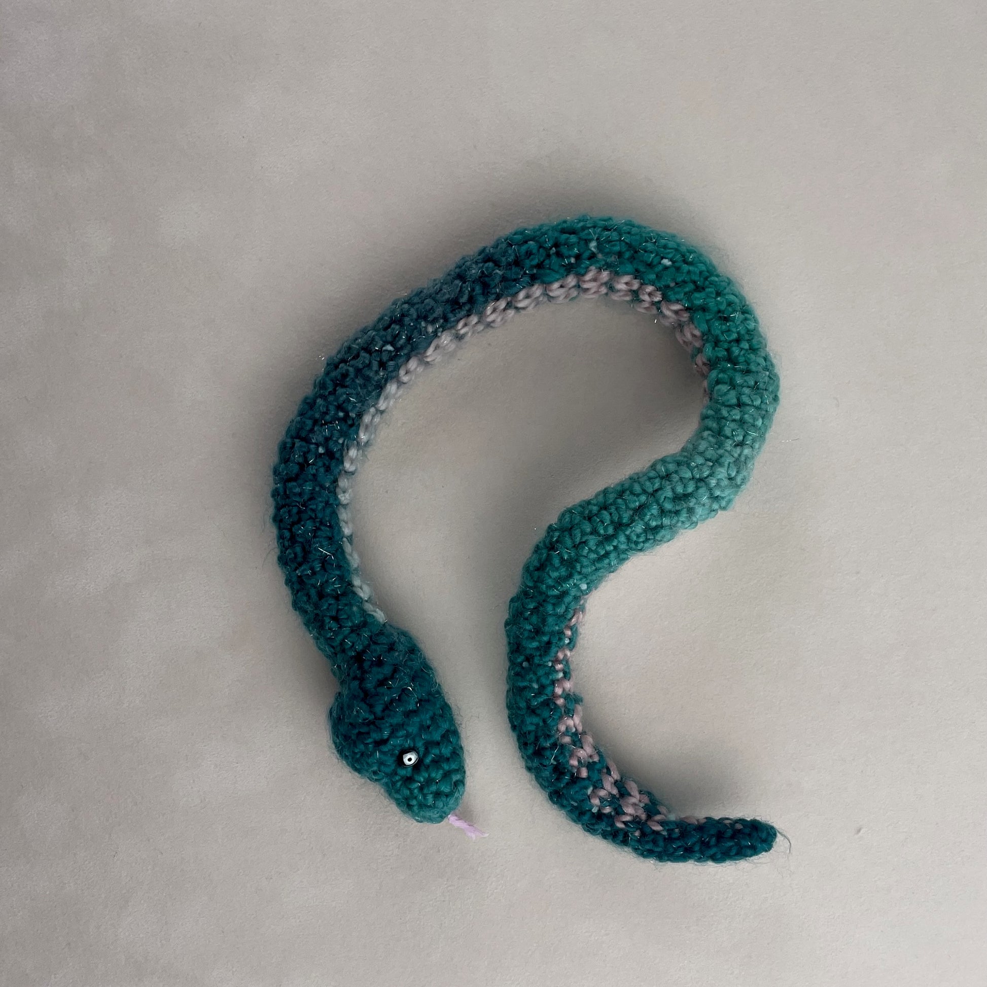 A long, playful crochet rainbow snake, soft and colorful, perfect for snuggles or decoration. Handmade with care in bright rainbow stripes, it is cheerful, cozy, and fun.